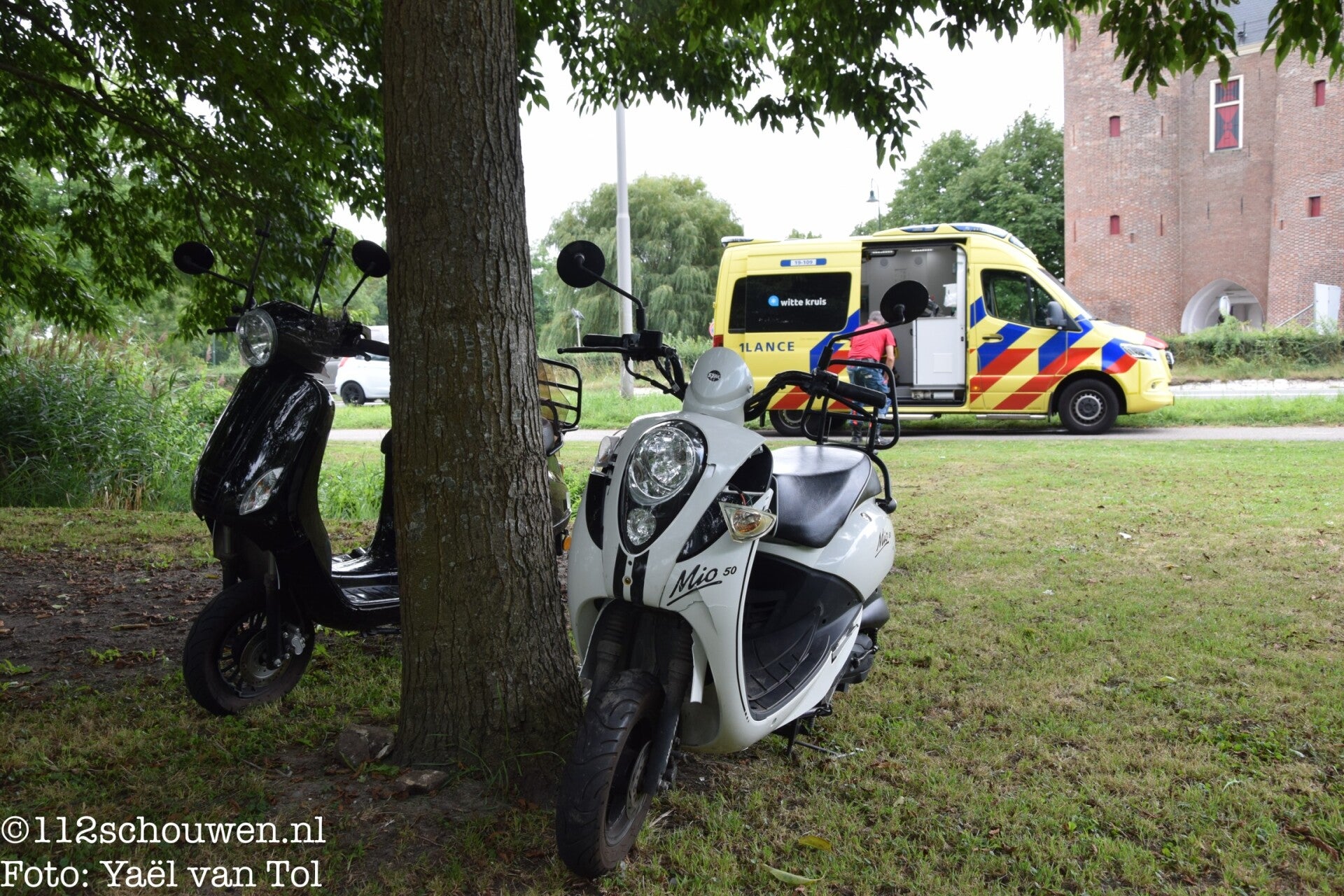 ZIERIKZEE - Op het fietspad langs de N59 bij Zierikzee zijn dinsdagmiddag twee scooterrijders in botsing gekomen.