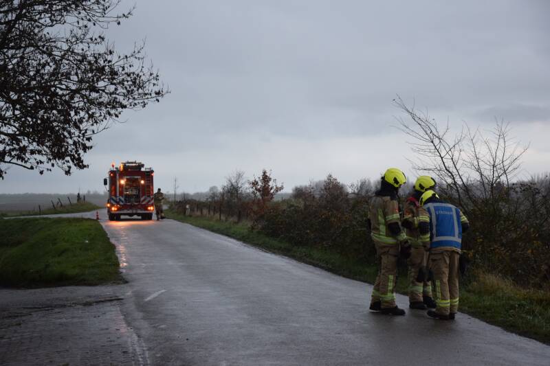 De brandweer werd ingezet om onderzoek te doen naar een sterke gaslucht. Omdat er daadwerkelijk gas werd geroken maar het nog niet duidelijk was waar de lekkage was werd de weg volledig afgesloten voor verkeer. De brandweer heeft meerdere metingen verricht langs de berm van de weg en onderaan de dijk bij een weiland.