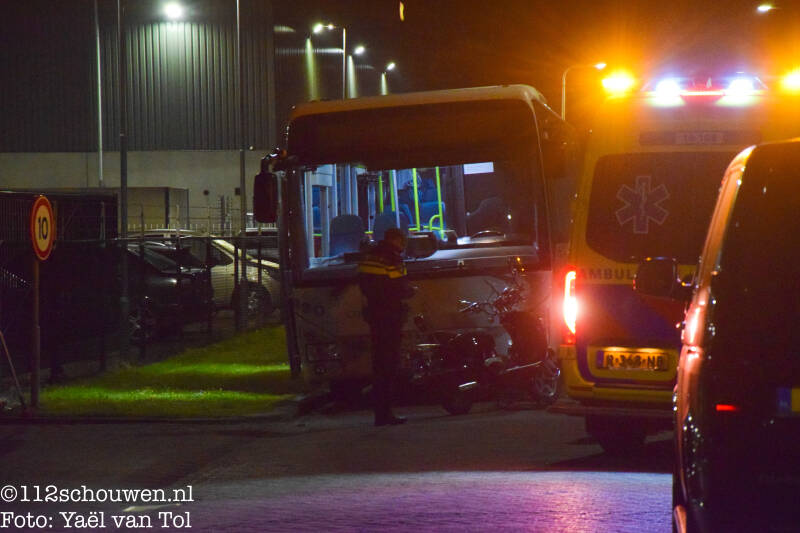 De scooter raakte flinke beschadigd en is door bekenden meegenomen. De bus raakte aan de voorzijde beschadigd door het ongeval. Hoe het ongeval kon plaatsvinden is nog onduidelijk.