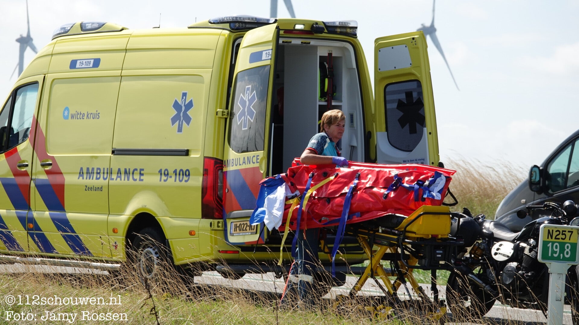 De auto en motor raakte door het ongeval beschadigd. Een rijbaan was tijdelijk afgesloten voor verkeer.