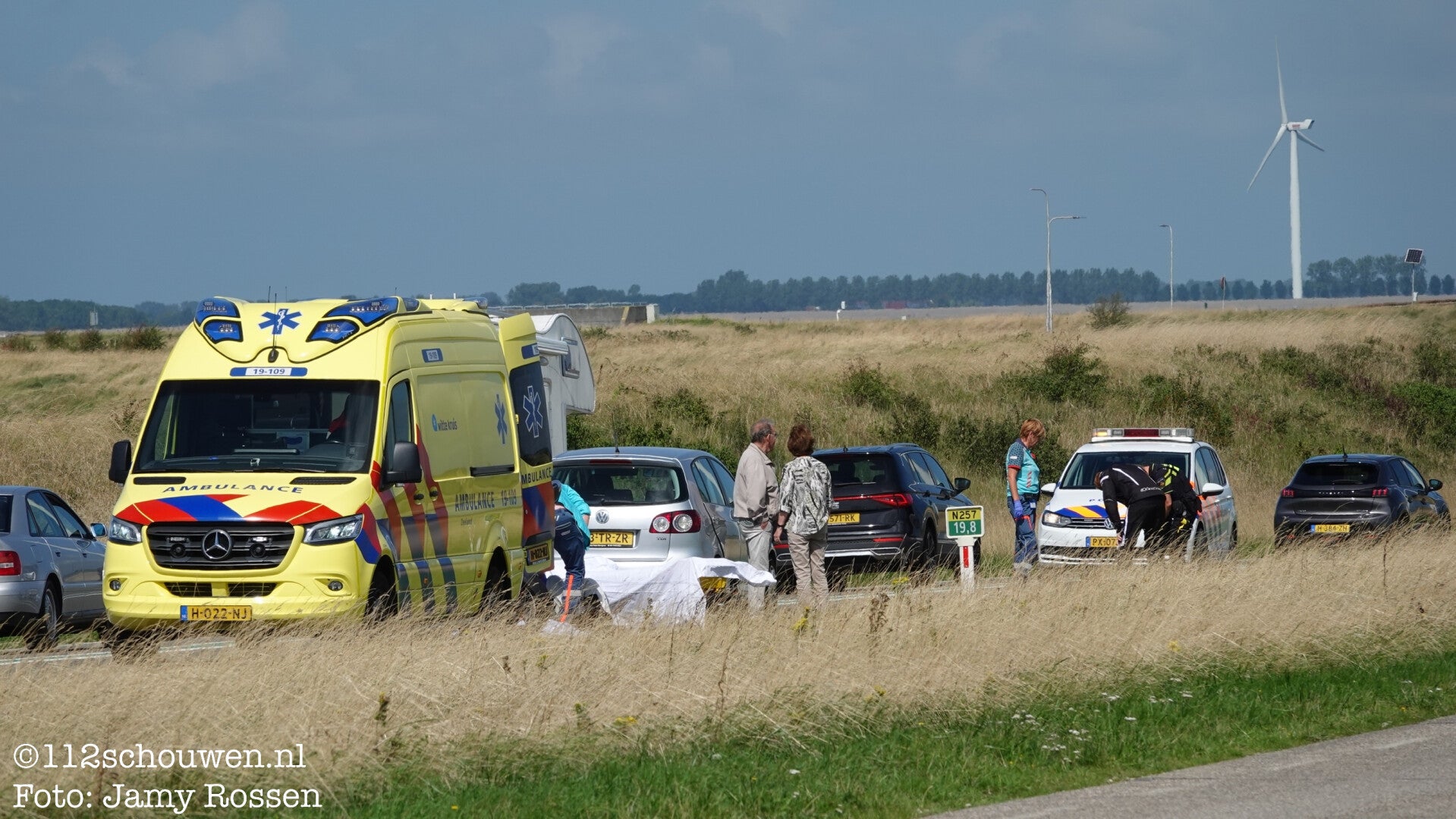 Door nog onbekende oorzaak is rond 11.50 uur een motorrijder achterop een personenauto gebotst na na de brug aan de kant van Bruinisse. De motorrijder kwam hard ten val en raakte gewond. Na behandeling is het slachtoffer vervoerd naar een ziekenhuis.