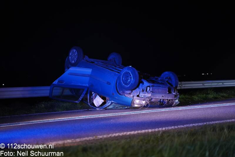 Een automobilist sloeg rond 18.20 uur door onbekende oorzaak over de kop. Omdat het niet duidelijk was of er sprake was van een beknelling werden brandweerploegen uit Bruinisse en Sint Philipsland opgeroepen. Uiteindelijk bleek niemand bekneld te zitten en heeft de brandweer enkel hand en spandiensten verleend. De bestuurder raakte gewond en is met spoed vervoerd naar een ziekenhuis.