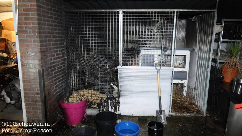 Door onbekende oorzaak had de stro in een konijnenhok vlam gevat. Het gehele hok brandde hierna uit. Meerdere konijnen in het hok overleefde de korte maar felle brand niet en zijn door de brandweer uit het hok gehaald. De brand was inmiddels al geblust door de bewoners.