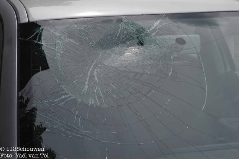 De auto raakte beschadigd aan de voorruit. Ook in de auto raakte geen personen gewond.