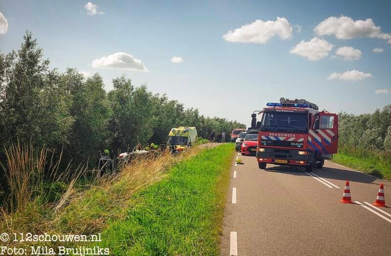 Aan het einde van de middag raakte een vrouw met haar auto van de weg en kwam onder aan een dijk, op zijn kant, tot stilstand. In de auto zaten naast de vrouw twee jonge kinderen. De vrouw is ter controle vervoerd naar een ziekenhuis, de kinderen bleven ongedeerd en zijn opgehaald.