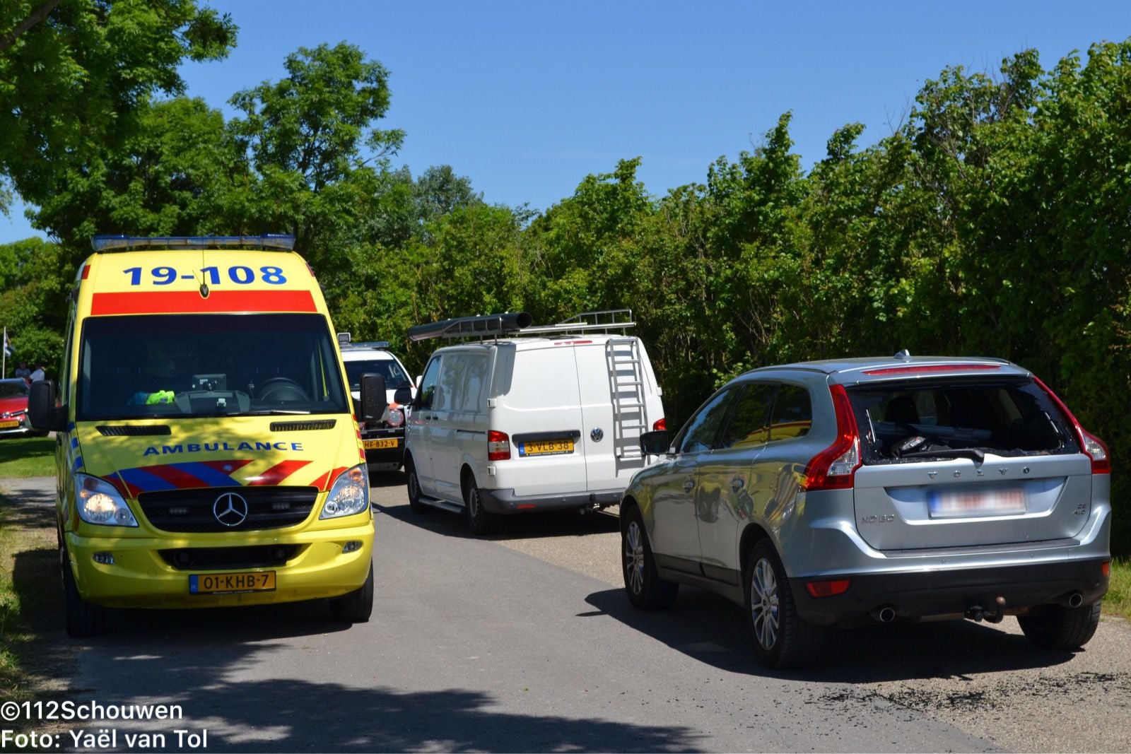 Op de Straalweg ontstond een botsing tussen een wielrenner en een personenauto. Doordat de wielrenner te laat zag dat er auto's stilstonden klapte hij tegen de achterkant van een auto. Door de klap vloog hij tegen de achteruit en raakte gewond. Er kwam een ambulance ter plaatse voor het slachtoffer. Na behandeling is het slachtoffer naar het ziekenhuis in Goes vervoerd.