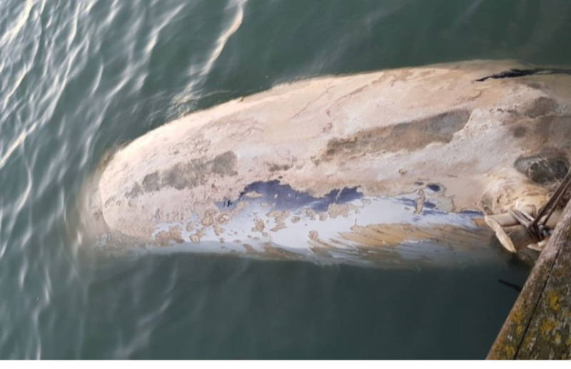 NEELTJE JANS - Dinsdag 12 december is in de haven van Neeltje Jans een dode walvis van 13 meter aangetroffen.