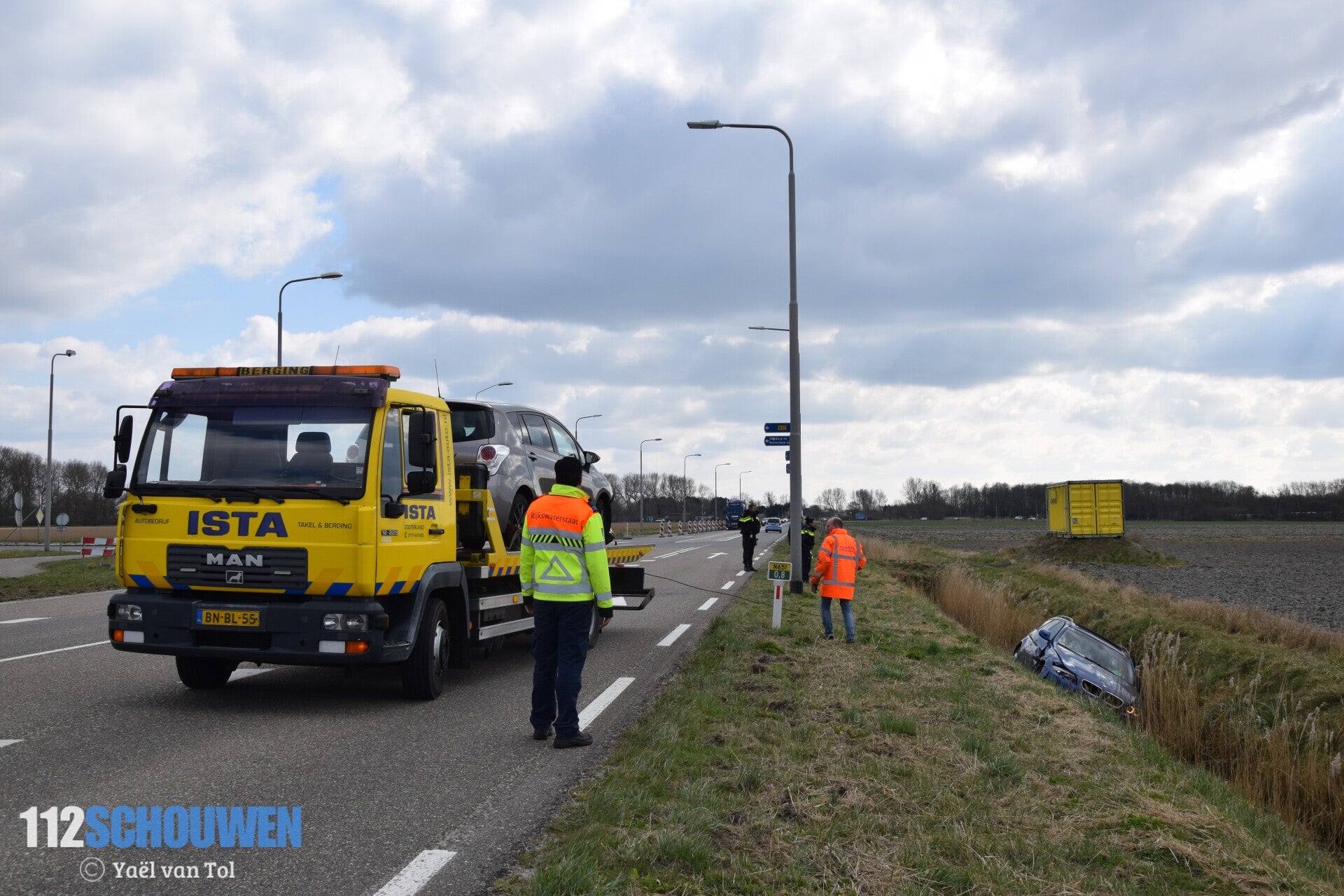 SEROOSKERKE - Bij een ongeval op de kruising tussen de N57 met de Stoofweg richting Renesse is een auto in een sloot terecht gekomen.