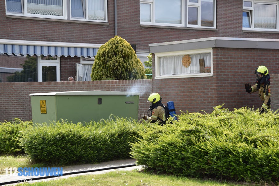 De brandweer werd rond 10.30 uur opgeroepen nadat er rook uit de kast naar buiten kwam. De brandweer heeft de kast opengebroken met een hydraulische spreider, waarna geconstateerd kon worden dat er van brand geen sprake was.