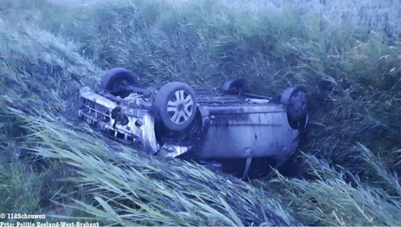 NIEUWERKERK - Zaterdagochtend is er omstreeks 05.00 uur een personenauto over de kop geslagen op de N59 bij Nieuwerkerk.
