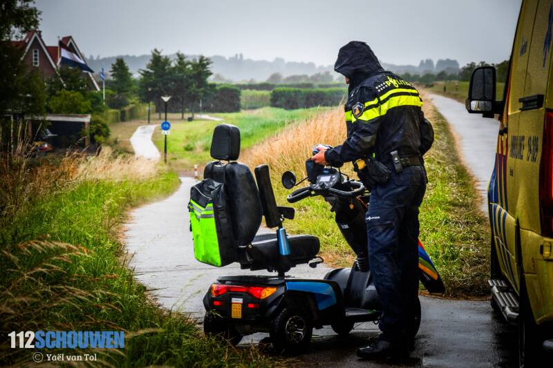 ZIERIKZEE - De hulpdiensten zijn woensdagmiddag ingezet nadat een persoon met zijn scootmobiel onderaan de Schouwsedijk terecht was gekomen.