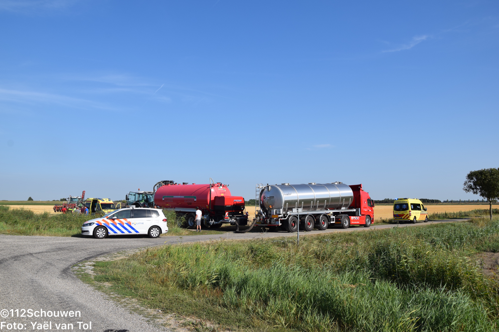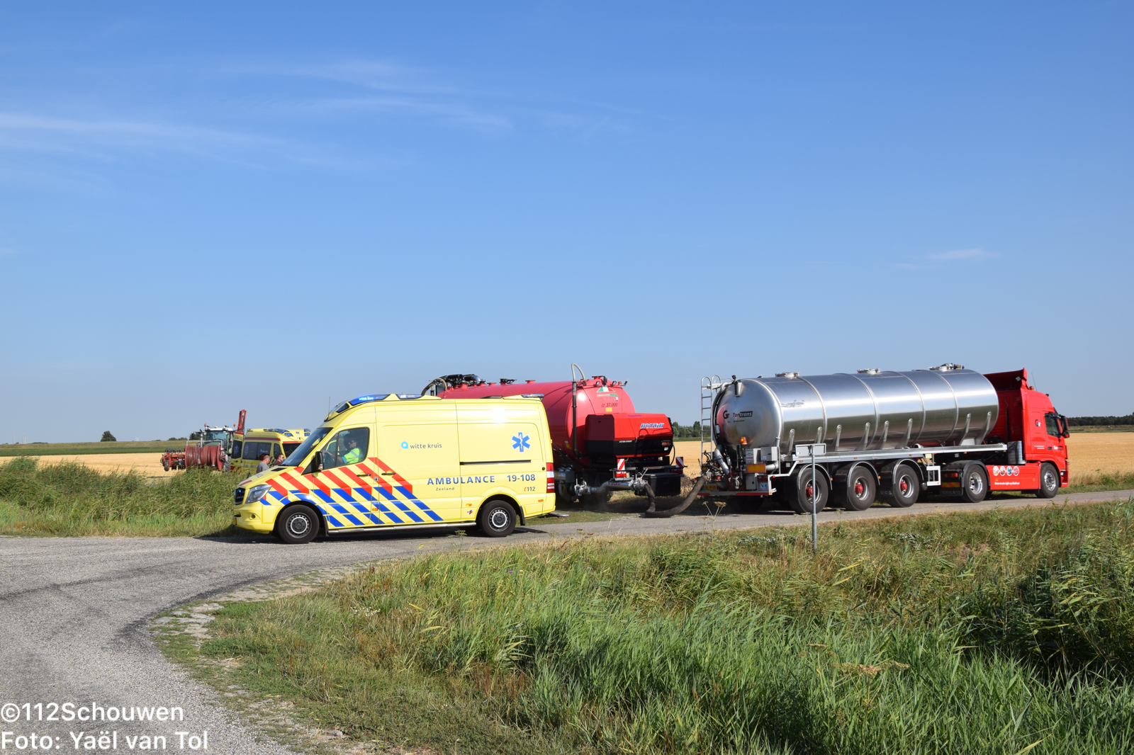 Er werden twee ambulances en een traumahelikopter ter plaatse gestuurd. Op een stuk land langs de Schapenweg was een persoon gewond geraakt tijdens het werken op het land. Mogelijk doordat hij werd geraakt door een stalen buis van een traktor. De ambulances zijn na behandeling naar Zierikzee gereden waar ook de traumahelikopter geland is. Na behandeling door het traumapersoneel is het slachtoffer met spoed vervoerd naar het ziekenhuis.