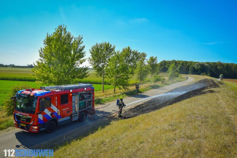 DREISCHOR - Langs de Noorddijk tussen Dreischor en Nieuwerkerk heeft vanmiddag een flink stuk droog gras in brand gestaan.