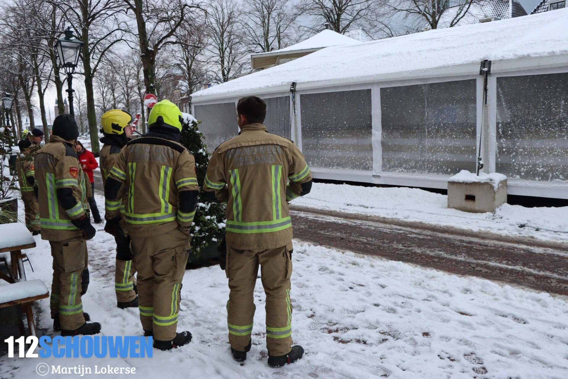 De brandweer werd vanmorgen ingezet om te kijken of er wat gedaan kon worden aan de situatie. Omdat het nu te gevaarlijk was om het dak op te gaan en het wegspuiten van de sneeuw mogelijk voor meer problemen ging zorgen, is er niet verder over gegaan tot actie.
