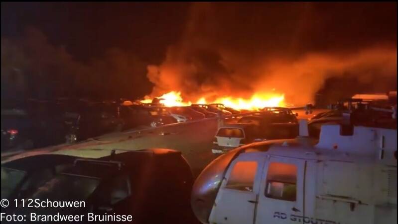Omstreeks 00.15 uur werd de brandweer opgeroepen voor een buitenbrand aan de Ringweg in Oosterland. Niet veel later werd er opgeschaald naar middelbrand en uit eindelijk naar zeer grote brand. Op het terrein van autosloopbedrijf Stouten stonden ongeveer 30 auto’s in brand. Met behulp van een heftruck zijn de auto’s van het terrein afgereden. De brandweer zette 4 tankautospuiten en twee waterwagens in. De officier van dienst kon omstreeks 01.30 uur brandmeester geven. Mogelijk is kortsluiting in een auto de oorzaak.