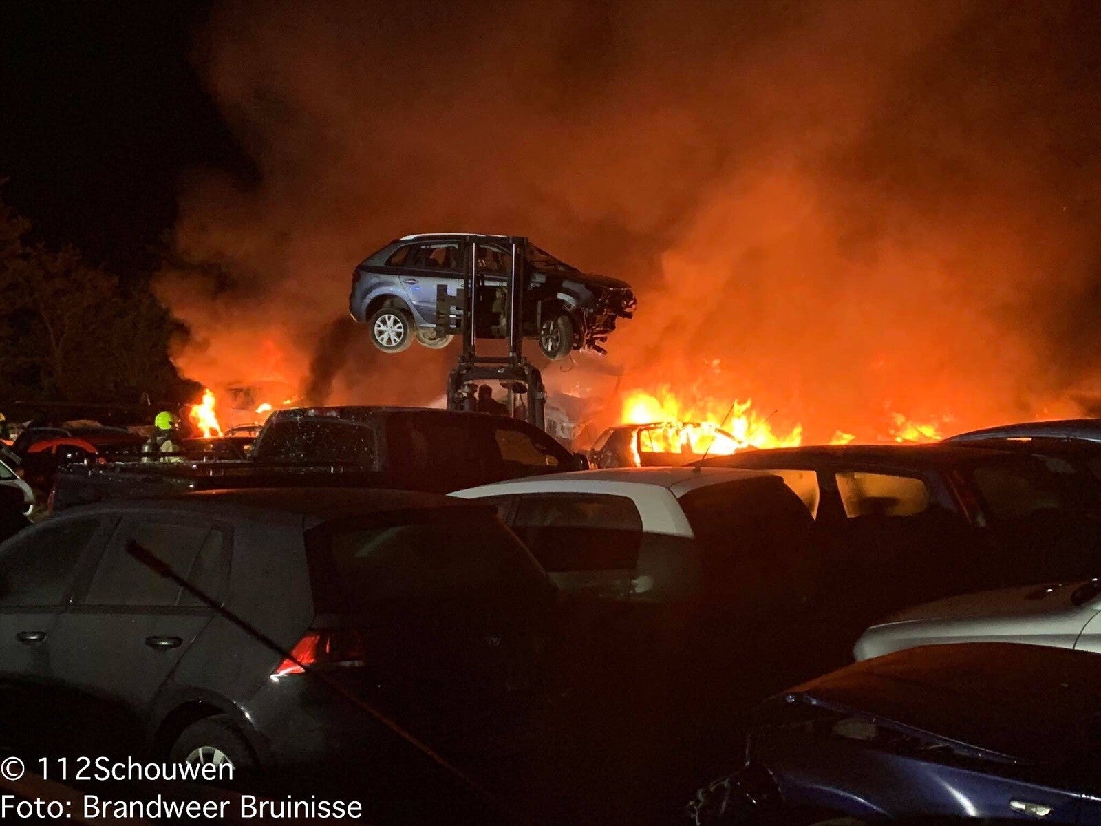 OOSTERLAND - Bij een grote brand aan de Ringweg bij Oosterland zijn vannacht ongeveer 30 auto’s uitgebrand.