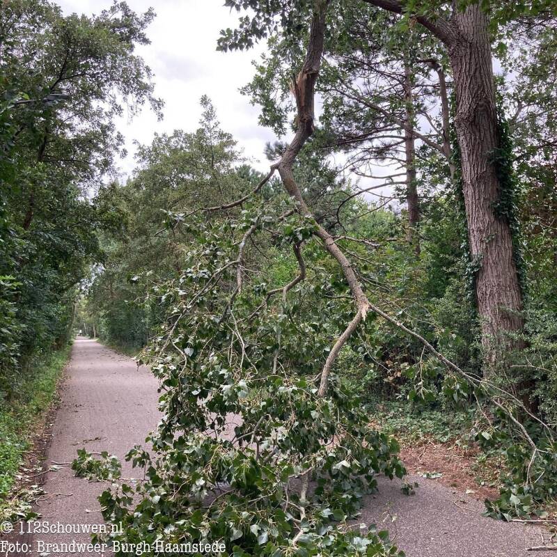 Op de terugweg naar de kazerne zijn er op de Torenweg nog twee afgebroken takken veiliggesteld door de brandweer.