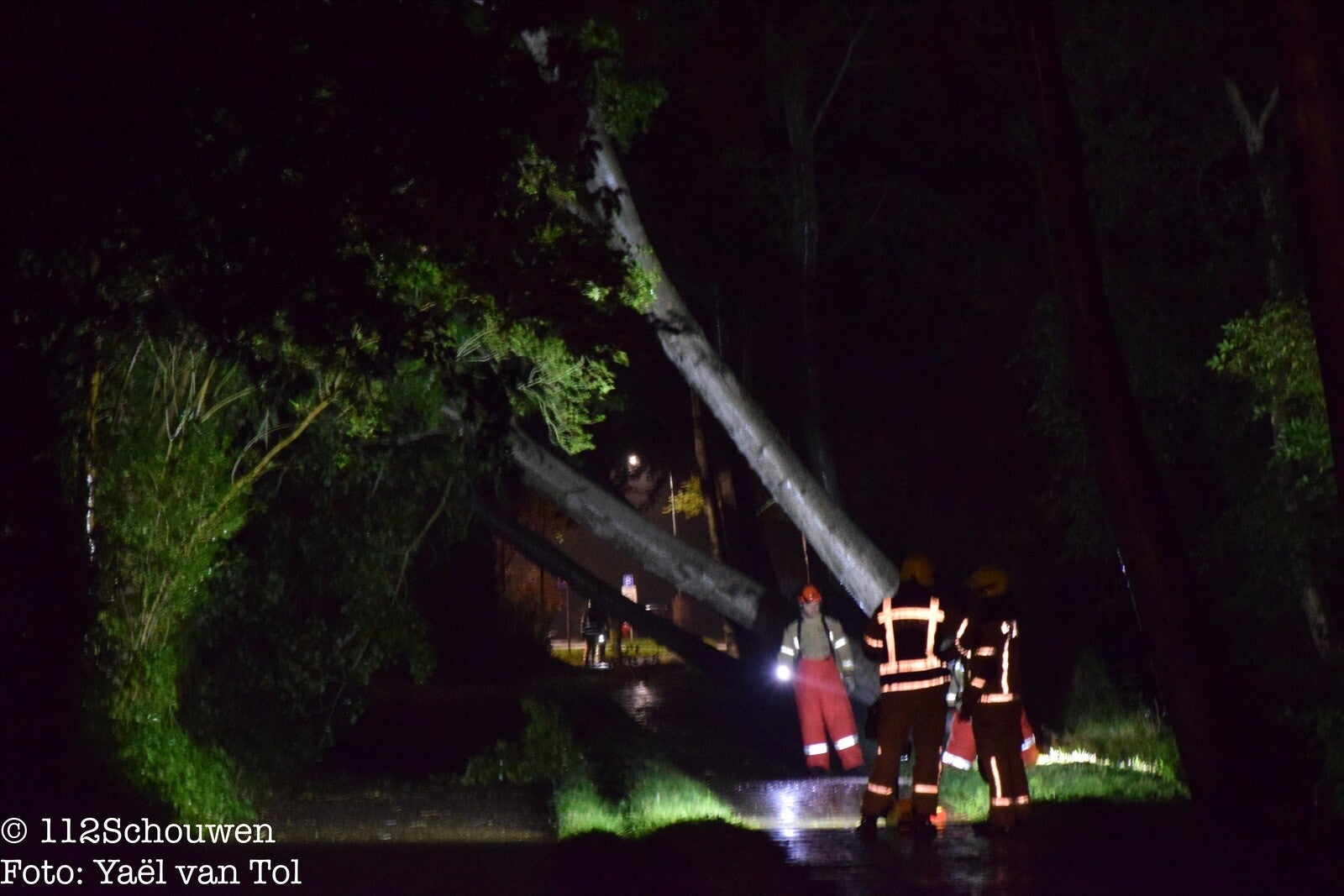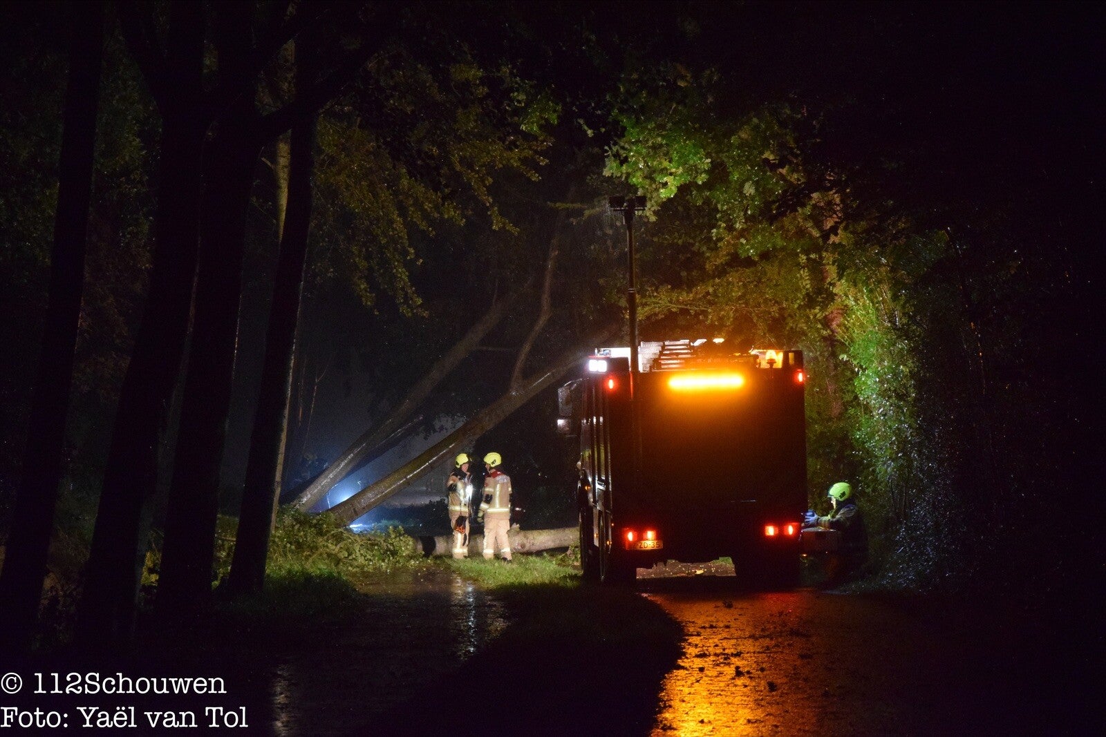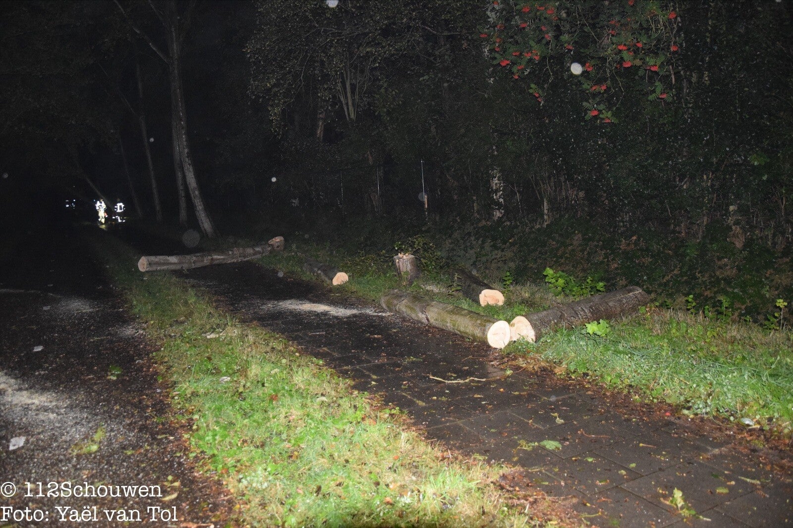 De brandweer van Burgh-Haamstede werd om 22.30 uur opgeroepen nadat er vier bomen omgewaaid waren op over het fietspad en de Kraaijensteinweg. Bij het ter plaatse komen waren inmiddels al zes bomen omgewaaid en stonden meerdere andere bomen op omvallen.
