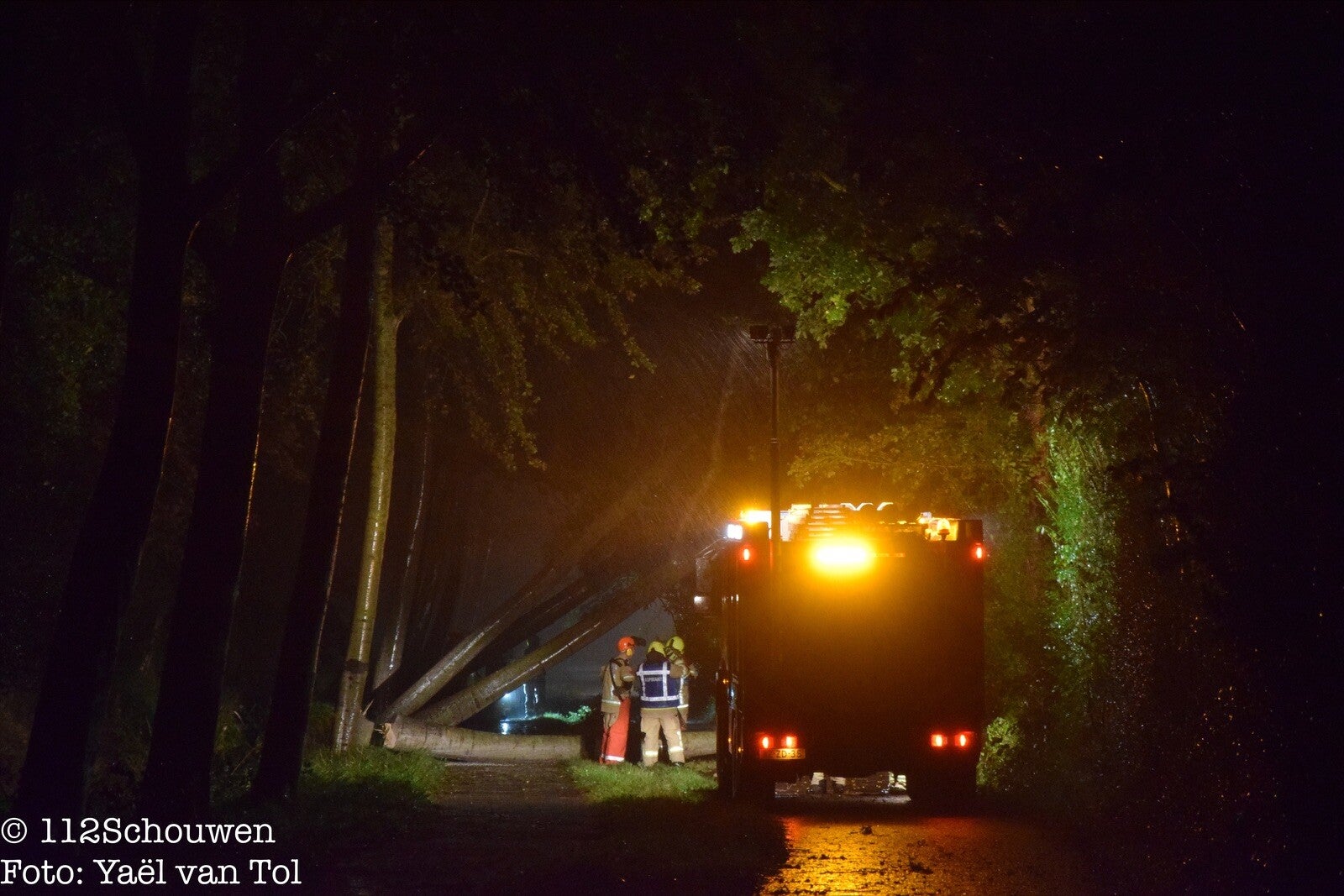 BURGH-HAAMSTEDE - Op de Kraaijensteinweg zijn vrijdagavond meerdere bomen omgewaaid. De brandweer is met twee tankautospuiten ter plaatse voor het omzagen van de bomen.