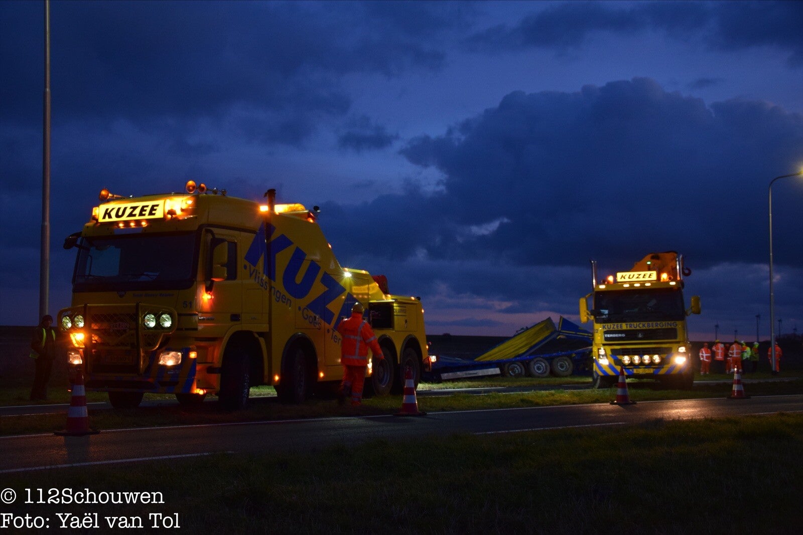 Door de berging van de vrachtwagen is één rijstrook van de N57 afgesloten voor verkeer. Door verkeersregelaars wordt het verkeer langs het ongeval gestuurd. De chauffeur van de vrachtwagen kwam met de schrik vrij.