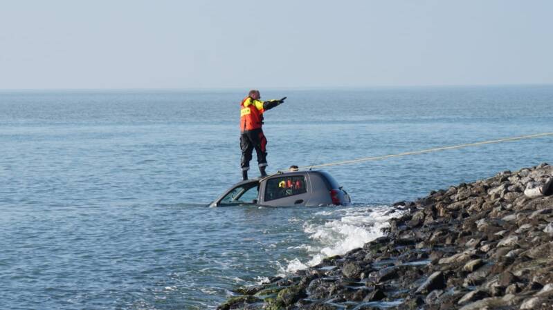 ELLEMEET - Een persoon is zaterdagmiddag gewond geraakt nadat de auto waarin de persoon zat te water raakte op de Brouwersdam. De auto verdween volledig onderwater.