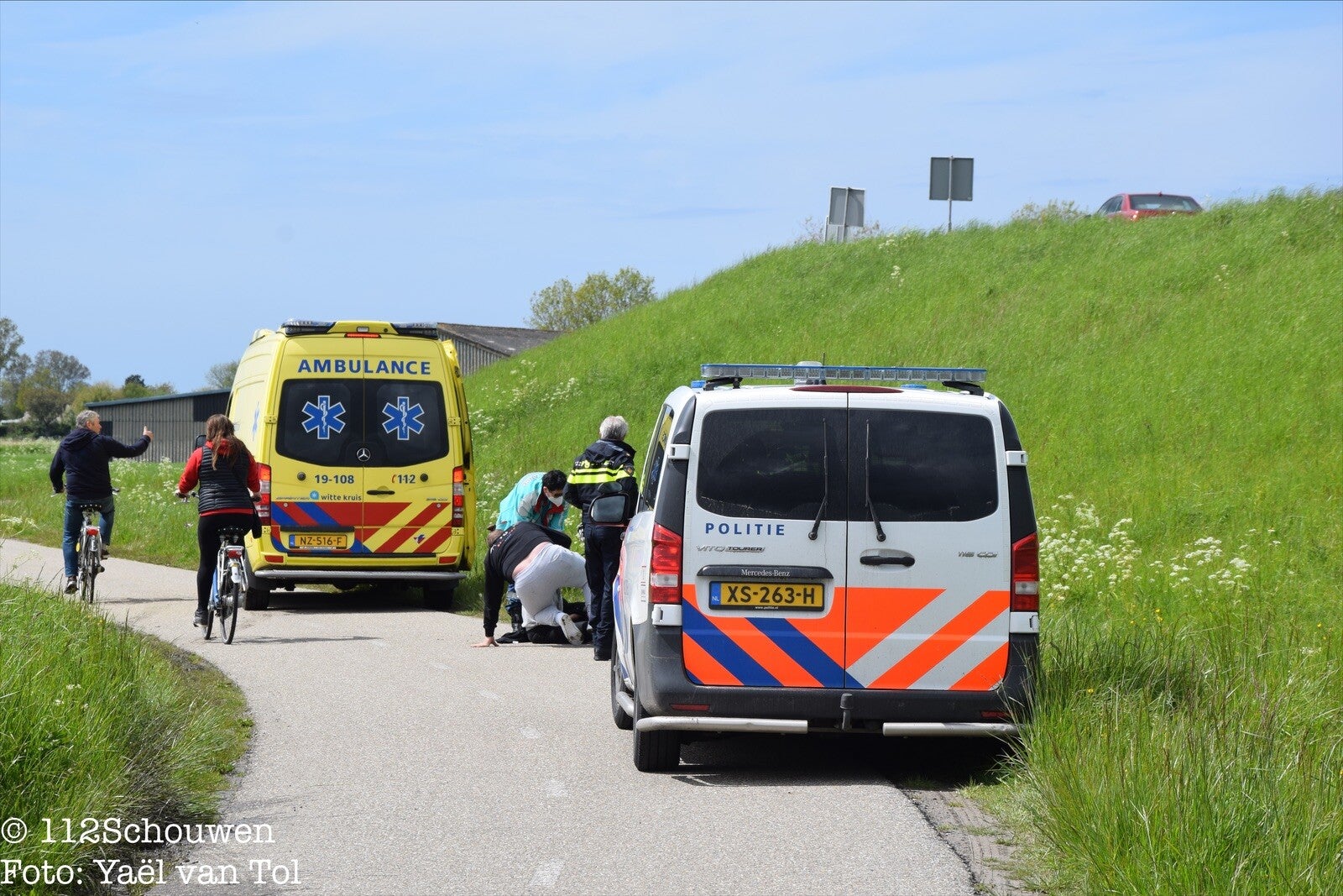 BROUWERSHAVEN - Een persoon is zondagmiddag ten val gekomen met een scooter op een fietspad bij Brouwershaven.