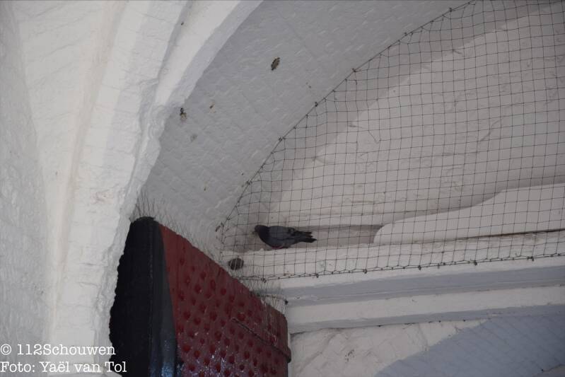 Een duif was achter een net om vogels te weren terecht gekomen en kon hier niet meer zelfstandig weg komen. Rond 16.15 uur werd de hulp van de hoogwerker van de brandweer ingeschakeld. De duif kon door de brandweerlieden snel gevangen en vrijgelaten worden.