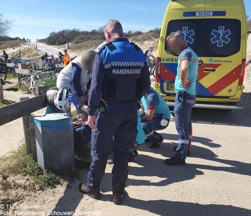 Een vrouw is zondagmiddag met haar fiets ten val gekomen ter hoogte van de strandovergang aan de Hoogenboomlaan in Renesse. Handhavers van Schouwen-Duiveland verleende eerste hulp tot de komst van de een ambulance. De vrouw was op haar hoofd gevallen maar het dragen van een helm heeft verwondingen voorkomen. Na een controle door het ambulancepersoneel bleek vervoer naar een ziekenhuis ook niet nodig.